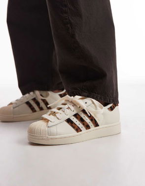Superstar II Trainers In White And Leopard Print Pony Hair