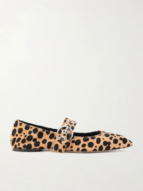 Uma Eyelet-Embellished Leopard-Print Pony Hair Mary Jane Ballet Flats