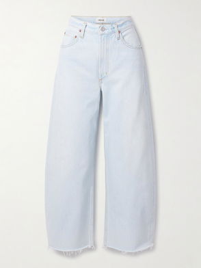 Low Curve Crop Frayed Mid-rise Wide-leg Jeans