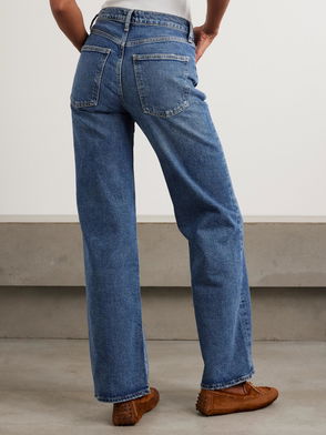 90's Pinch Waist Long Frayed High-rise Straight-leg Jeans