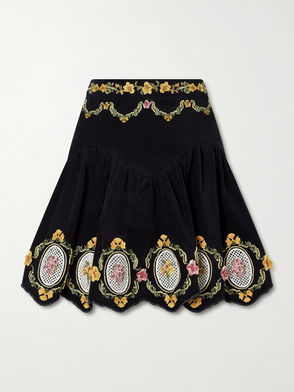 Asai Cordillera Scalloped Embroidered Cotton-Blend Velvet Mini Skirt