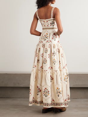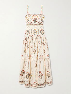 Lima Gloriosa Tiered Faux Pearl-Embellished Printed Linen Maxi Dress