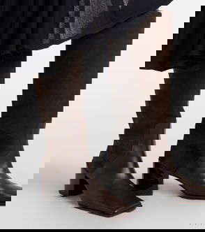 Square Leather Knee-High Boots