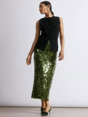 Drop Waist Flared Twill Cotton Midi Puffball Skirt