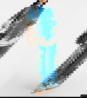 Fletcher Graphic-Print Wide-Leg High-Rise Satin Trousers