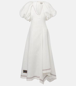 Fletcher Puff-Sleeve Ramie Midi Dress