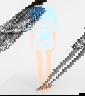 X LRNCE Michelle Printed Linen Bermuda Shorts