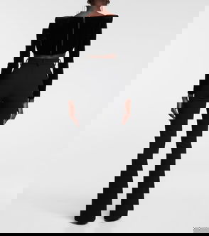 Crystal-embellished Pinstripe Velvet Bodysuit