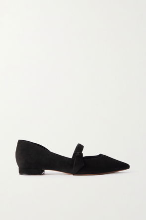 Asymmetric Clarita Bow-Detailed Suede Mary Jane Flats