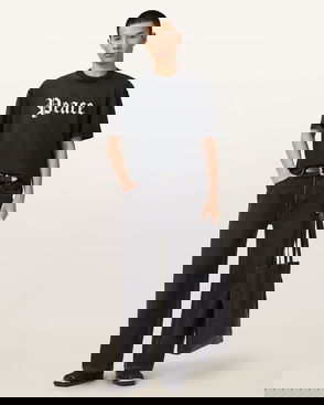 Aki Cross Over Wide Leg Denim Jean In Mid Washed Black