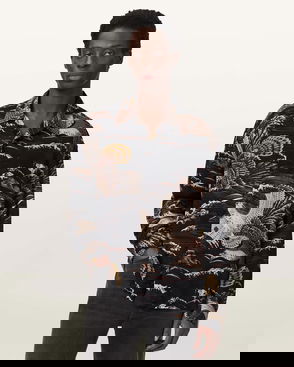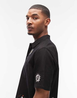 Fleur Peach Short Sleeve Shirt In Jet Black - BLACK