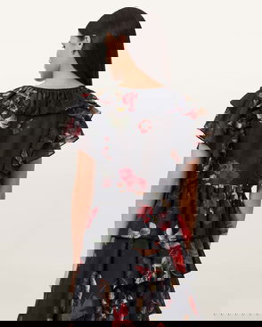Printed Katlyn Long Sleeve Top In Black And Gold