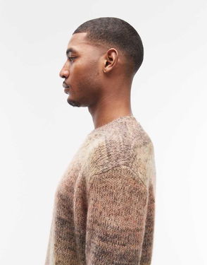 Finch Crew Neck Knit Jumper In Brown Stripe