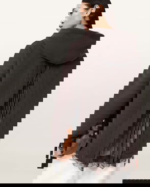Lace Trim Hoodie In Brown