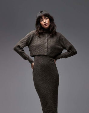 Sabine Co-ord Knit Dress & Cardigan Two Piece In Brown