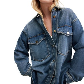 Aki Cross Over Wide Leg Denim Jean In Mid Washed Grey