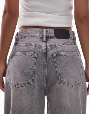 Aki Cross Over Wide Leg Denim Jean In Mid Washed Grey