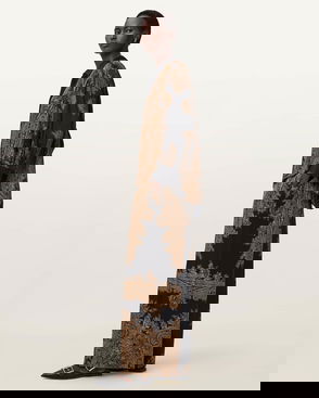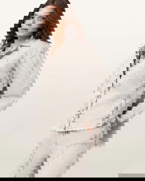 Mode Merino Wool Open Knit Logo Cardigan In Charcoal Grey
