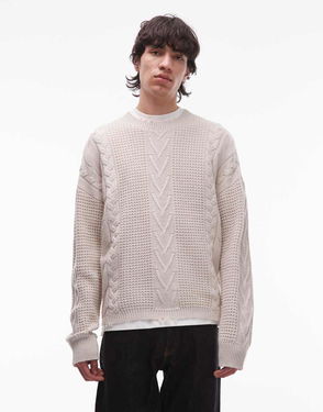 Tenter Crew Neck Cable Knit Jumper In Cream