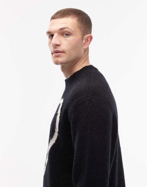 Bower Crew Neck Diamond Knitted Jumper In Black / Brown