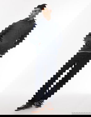 Mode Merino Wool Zip Through Logo Hoodie In Charcoal Grey