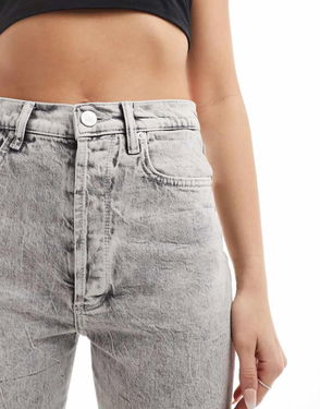 Aki Cross Over Wide Leg Denim Jean In Mid Washed Grey