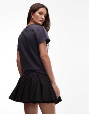 Tulip Black Cotton Mini Skirt