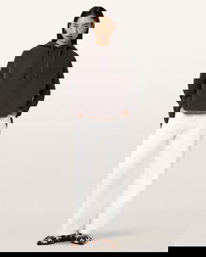 Mode Merino Wool Zip Up Logo Knit Hoodie