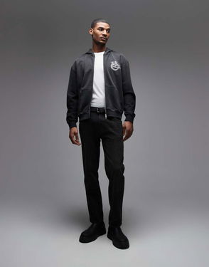 Terra Zip Through Graphic Logo Hoodie In Washed Black