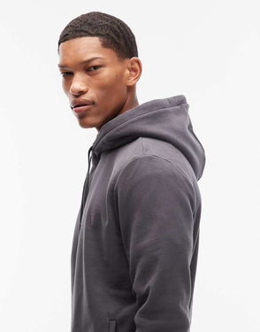 Mode Merino Wool Zip Through Logo Hoodie In Charcoal Grey