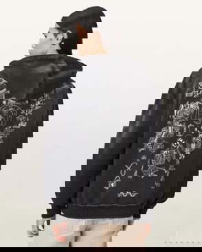 Terra Zip Through Graphic Logo Hoodie In Washed Black