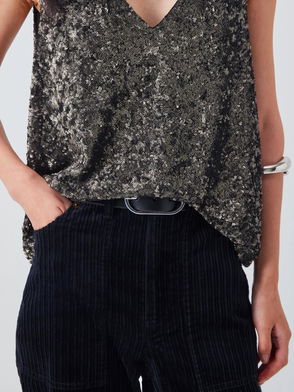 Sheridan V-Neck Sequin Vest Top, Charcoal