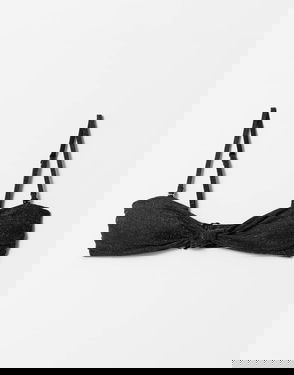 Mix And Match Knot Front Bandeau Bikini Top With Gold Glitter Thread And Removeable Padding In Blac