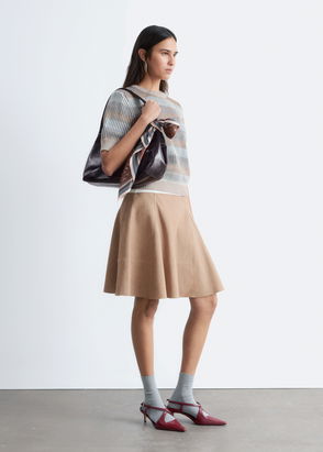 Alpaca And Mohair Sweater With Sculptural Sleeves And Split Side In Beige