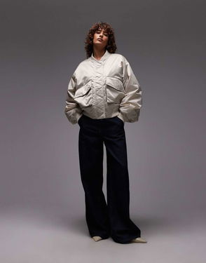 Relaxed Fit Bomber Jacket In Beige Neutral