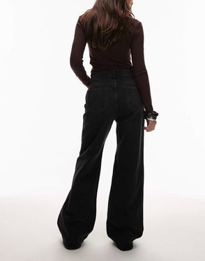 Mid Rise Wide Leg Jeans In Washed Black
