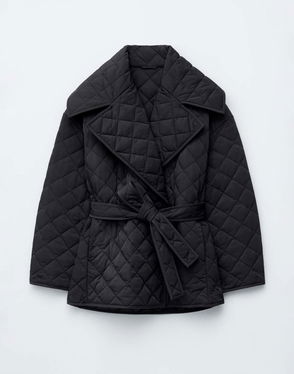 Quilted Belted Long Line Jacket In Black