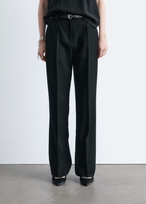 Tailored Cropped Trousers With Front Tuck Pleat In Black