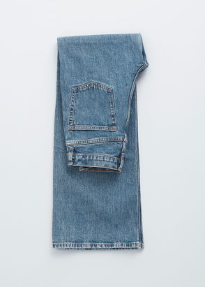 Barrel Leg Jeans With Front Seam And Corset Wait Seam Detail In Clean Blue Wash