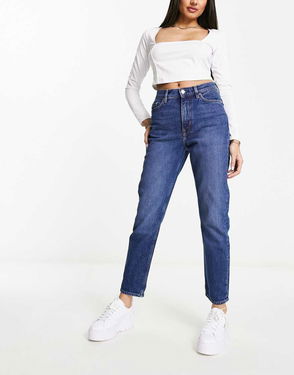 Mid Rise Wide Leg Jeans In Mid Blue Wash