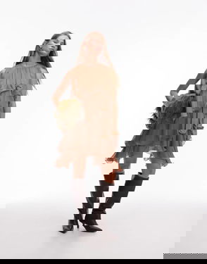 Square Neck Mini Dress With Full Hem In Brown