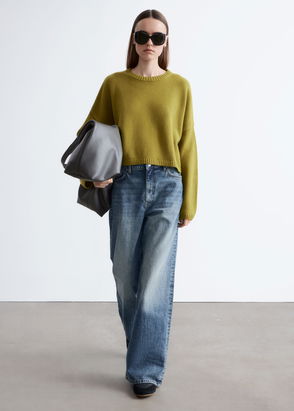 Mohair And Wool Blend Crew Neck Cardigan In Navy