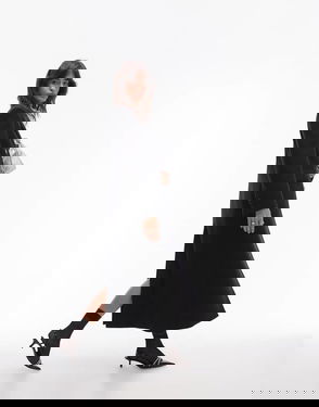 Wool Blend Double Breasted Maxi Coat With Bold Shoulder Details In Black