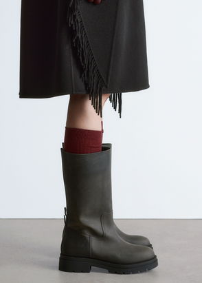 Wool Blend Long Sleeve Utility Jumpsuit In Dark Brown