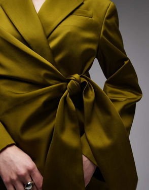 Satin Blazer Co-ord With Tie Waist Detail In Olive