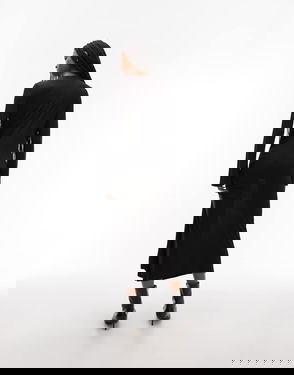 High Neck Long Sleeve Soft Twisted Midi Dress In Black