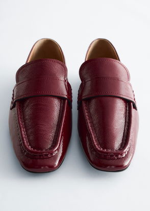 Square-Toe Leather Loafers