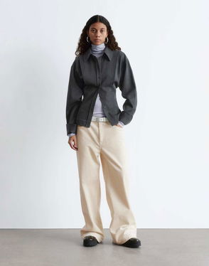 Pure Wool Bold Shoulder Shacket With Cinched Waist In Grey