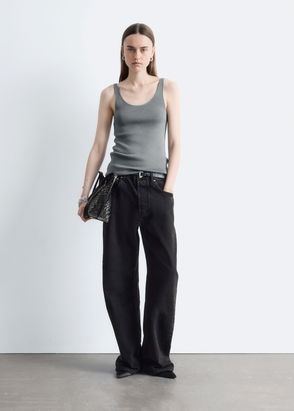 Jersey Slim Fit Crew Neck Top With Cap Sleeves In Grey