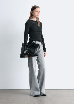Soft Jersey Rib Long Sleeve Top In Grey Melange